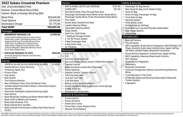 With its exceptional versatility, advanced safety features, and premium amenities, the 2022 Subaru Crosstrek Premium is the perfect companion for your adventures, whether tackling the daily commute or exploring the great outdoors. Experience the exceptional value and quality that the Crosstrek has to offer.