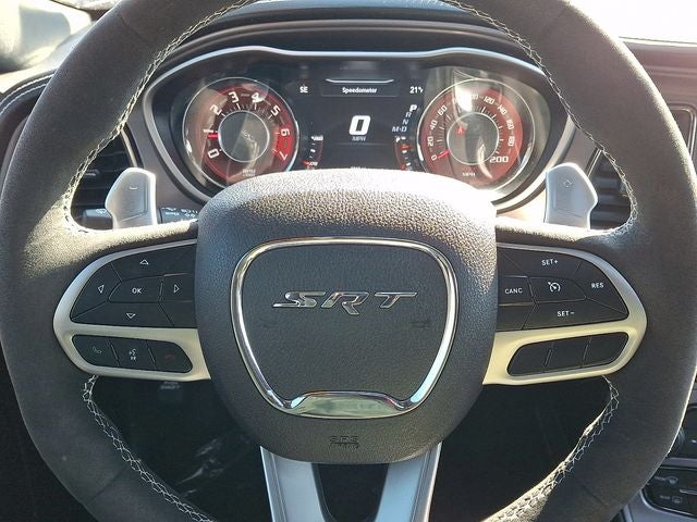 Beneath the sculpted hood of this Challenger lies the legendary 6.2L Supercharged HEMI V8 SRT engine, delivering a staggering 717 horsepower and 656 lb-ft of torque. Paired with the lightning-fast 8-speed automatic transmission, this Hellcat Jailbreak model promises unrivaled acceleration and an exhilarating driving experience.